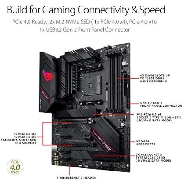 Best gaming connectivity: PCIe 4.0-ready, dual M.2 slots, USB 3.2 Gen 2 Type-C, plus HDMI 2.1 and DisplayPort 1.2 output