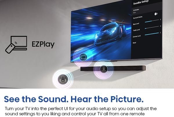 EZPlay – Automatically pair your Hisense soundbar unit to your smart TV for a simple, user-friendly interface. Turn your TV into the perfect UI for your audio setup so you can adjust the sound settings to you liking and control your TV all from one remote.