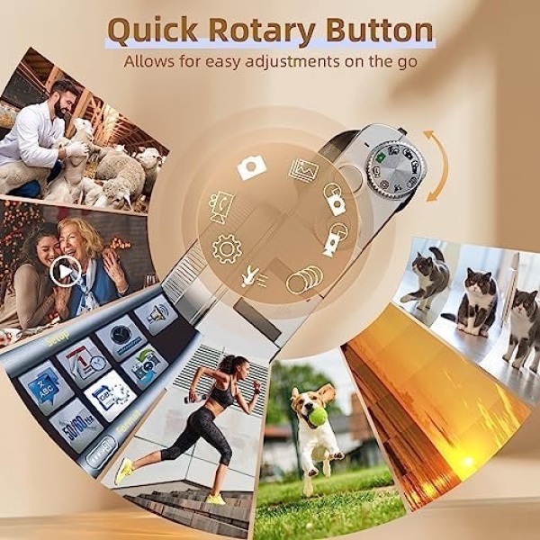 🎒【Rotary Button & Lightweight Camera with Case】The vintage digital camera comes with a leather protective camera case, which protect the lens and body from getting scratched. Just carry the pocket-sized camera around your neck and open the cover to start shooting securely. The intuitive interface and well-labeled rotary buttons of photography camera make it efficient to navigate through the settings to suit different shooting conditions.