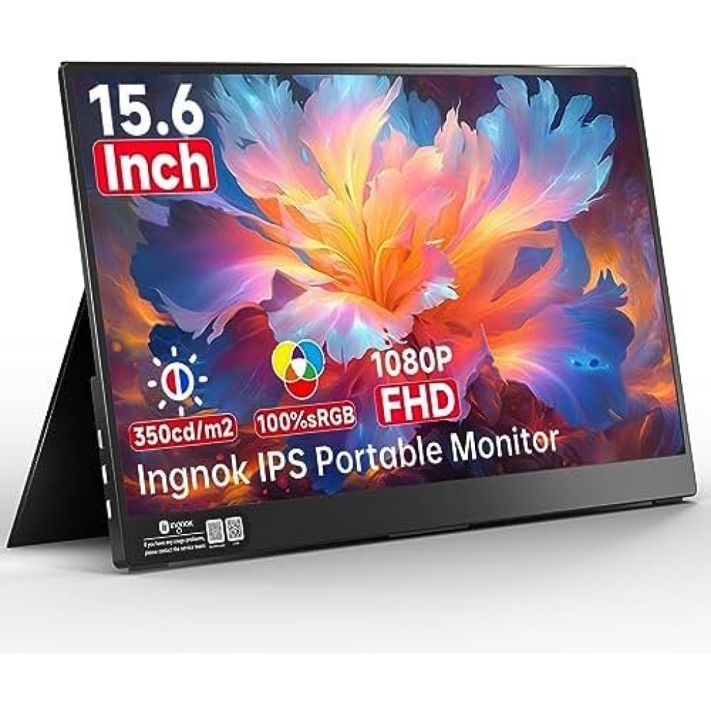 Portable Monitor 15.6 Inch FHD Ingnok A+Screen 100%sRGB IPS Laptop Screen