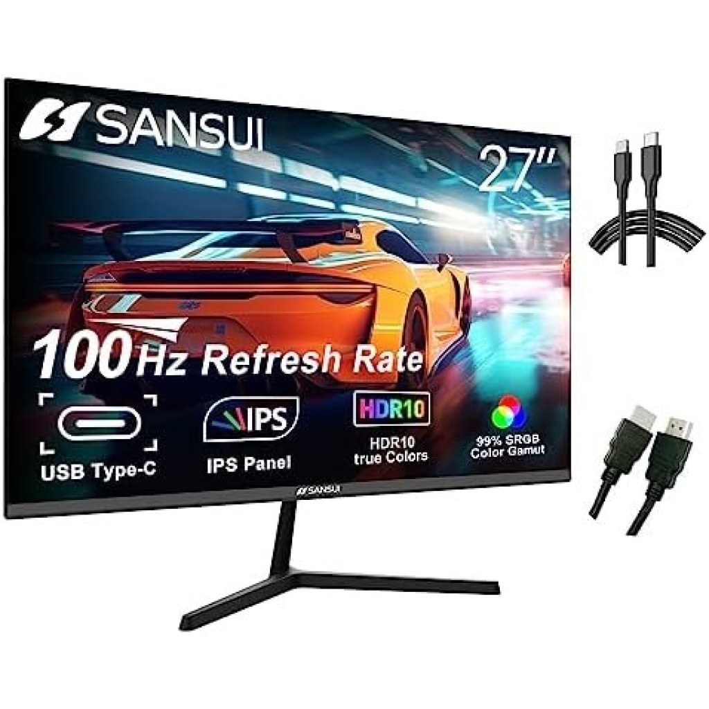 SANSUI Computer Monitors 27 inch 100Hz IPS USB Type-C FHD 1080P HDR10 Built-in